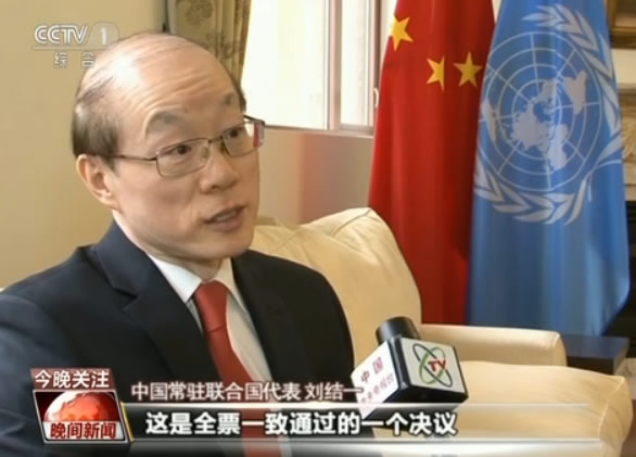中国常驻联合国代表 刘结一:我觉得我应该强调一下,这是全票一致通过的一个决议,这就充分地说明了各方越来越认识到“构建人类命运共同体”是国际社会的共同利益所在,是人类文明发展方向所在。