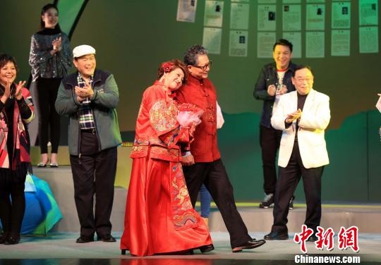 由钱程(右)饰演的退休教师与徐磊饰演的退休医生在“相亲角”偶遇后,引发了一连串的误会、巧合、矛盾与错位。表演令人捧腹大笑。 潘索菲 摄