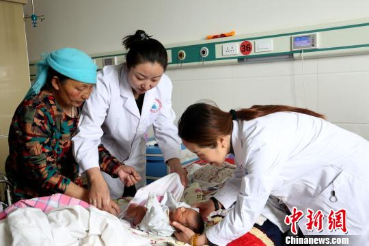 医师周万萍和董凤敏用藏语询问产妇和婴儿的状况。 张海雯 摄