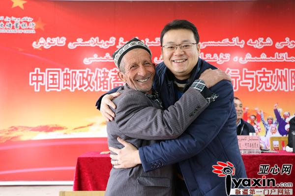 村支书艾莱提•木里克与邮储银行新疆分行办公室干事海米提•力提甫拥抱告别时,双眼已是满含热泪。他说,“今天像过节一样幸福,希望你们能常来这里看看我们。”