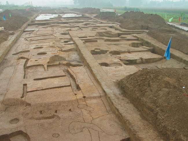 位于浙江余杭区良渚镇,距今5300至4300年左右,是长江中下游分布广泛的良渚文化的代表性遗址,总面积约8平方公里。在中国史前各遗址中,良渚遗址规模最大,发展水平也非常高。距今4300年左右,这一曾经高度繁荣的文明突然消失。良渚遗址中,有水利系统、宫殿、祭坛以及鲜明的城乡体系。大量精美玉器是良渚文化的一大特征。