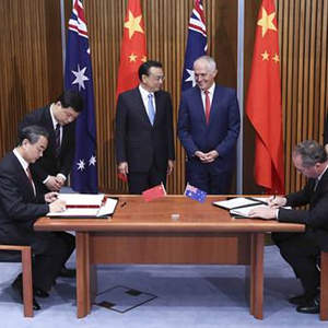 3月24日,国务院总理李克强与澳大利亚总理特恩布尔在堪培拉议会大厦,共同见证了中澳两国八份合作文件的签署。