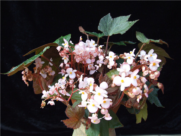 ‘三裂’秋海棠(Begonia ‘Sanlie’)花被片桃红色,着花数多;1-4月开花;叶片褐绿色掌状三至四浅裂。