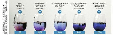 专家释疑:李紫燕称,野生黑枸杞果肉紧实,花青素析出较慢;种植黑枸杞组织松散,所以析出很快,类似晕染;假的黑枸杞不含花青素,有的还可能是染的色,所以很快就不会析出蓝色。
