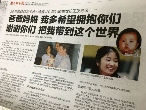 詹纳20岁时进入了美国知名的大学耶鲁大学,她当时从大学得到一笔研究经费,让她可以去中国寻亲并把这作为一个研究项目。詹纳寻亲的故事被登到武汉当地的报纸上。文章登在不显眼的地方,但却引起了巨大的反响。