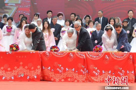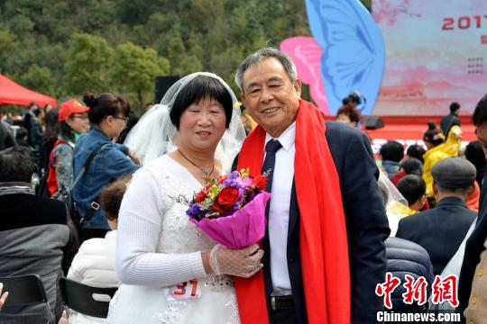中新网湖州3月25日电(见习记者 陈洁)“你侬我侬,忒煞情多,情多处,热如火”。25日,在深情款款的《我侬词》吟诵声中,第四届莫干山赏花节在浙江省德清县莫干山镇的一派春意盎然中拉开帷幕。开幕式上,“花为媒、情似海”金婚盛典成为一大亮点,35对来自江浙沪的耄耋老人在春光见证下盛装携手走上红毯,品味爱情于绵长岁月中的细水长流。