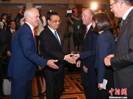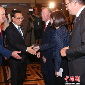 当地时间3月24日下午,中国国务院总理李克强在悉尼与澳大利亚总理特恩布尔共同出席第二届中澳省州负责人论坛并致辞。 中新社记者 刘震 摄