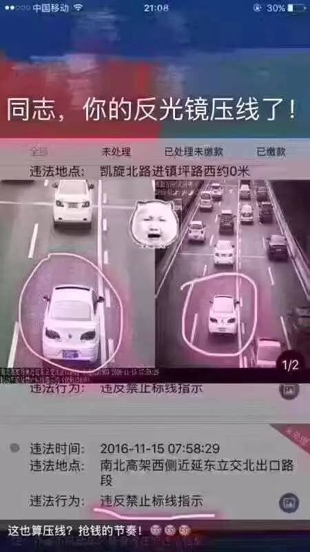 反光镜压线也要罚?