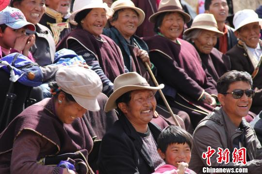 当地游客观看西藏林芝市嘎拉村举行的民俗体育竞技比赛。 刘荫 摄