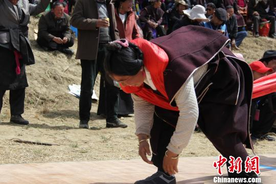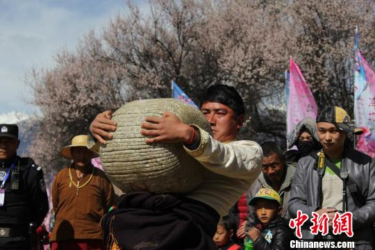 中新网林芝3月26日电 (刘荫)26日,在西藏林芝市第十五届桃花旅游文化节期间,林芝嘎拉桃花村举行传统藏族民俗体育比赛,吸引了来自各地的游客体验藏族特色体育运动项目。