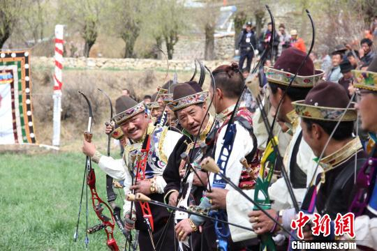 西藏林芝市嘎拉村村民在进行藏族传统工布响箭比赛。 刘荫 摄