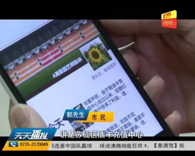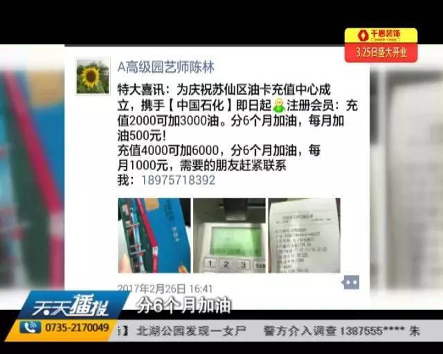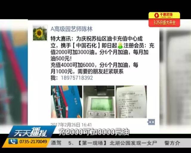 郴州市民举报一网络平台充4000元可加6000元油 华声在线 华声在线官方账号 2017.03.2614:56 关注 原标题:城区充4000元可加6000元油???? 如果我告诉你,充4000元卡可以给你加6000元的油,你信吗?最近,市民郭先生就在朋友圈看到了这样的广告宣传语。有车一族都知道,平日里充值加油卡,赶上活动期,顶多也就送个礼品什么的,如果真有这样低于七折的活动,说实话,我都会心动。可,这是真的吗?