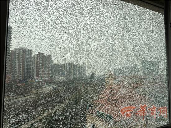 3月20日中午12时许,家住咸阳宇宏·健康花城的张女士正在厨房做饭,突然阳台方向传来“咚”的一声,并伴随着“嗞嗞”声,张女士走过来一看,阳台上的一块玻璃竟然成了碎纹状。