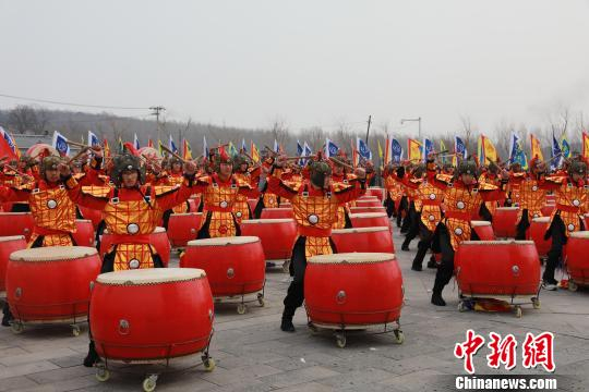 在法库的辽代遗存里,壁画、雕刻、铜镜、花砖,都可见到白鹤的身影。图为第九届沈阳法库国际白鹤节开幕式上进行的大辽鼓韵表演。 沈殿成 摄