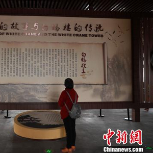 法库流传着很多有关白鹤的美丽传说。图为第九届沈阳法库国际白鹤节启幕当天,游客在白鹤楼内参观。 沈殿成 摄