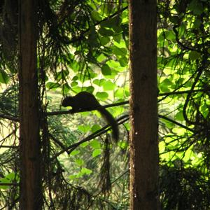松鼠是杂食性动物,原始森林(或天然林)生态链完整,松鼠食物来源丰富,一般以果实、种子、昆虫、鸟卵等为食。其天敌也较多,主要有鼬科动物、猛禽及蛇等。这样的环境,维系了一种生态平衡,让松鼠的种群保持在一定合理范围内。