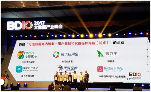 中新网3月28日电 28日,“2017大数据产业峰会”在北京召开。国内首个“可信应用商店服务—用户数据和权益保护评估(试点)”于大会发布结果并颁发证书。其中,360手机助手凭借多项指标达标成功入选可信应用商店。