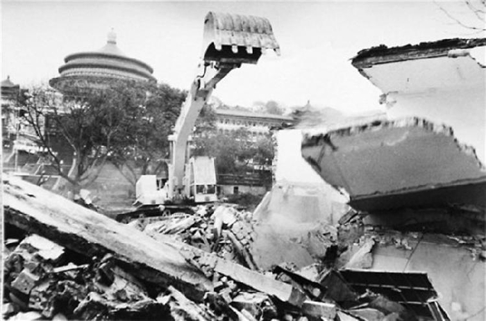 1997年3月,市政府举行了新闻发布会,要求3月中旬完成施工单位招投标,5月底前完成人民广场第一阶段建设,也就是拆除围墙,绿化环境,同时对中心礼堂完成一次维修和翻新。由此之后,我每天都要跑一趟人民大礼堂,关注最新的动态。