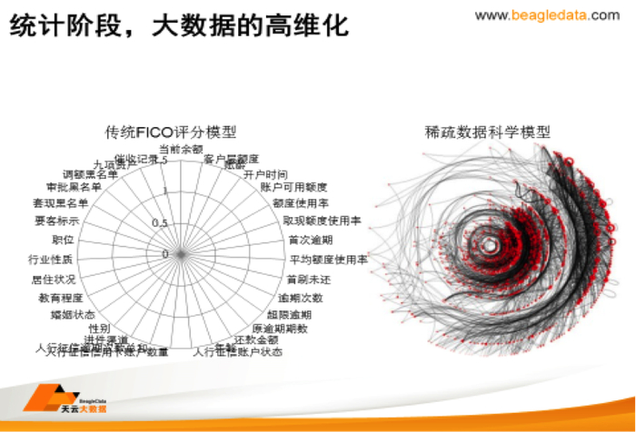 “小众的欺诈事件越来越难以用商业经验和确切规则描述出来,国内目前的欺诈都是rule base(规则驱动)的,即凭借过往经验和从此前发生过的事实中,抽象出系列规则,每一条规则触发一种欺诈场景,交叉组合所施加的业务逻辑判断,就构成了欺诈模型,”天云大数据CEO雷涛在接受第一财经采访时表示。