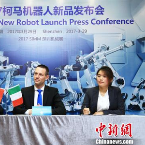 中新网深圳3月29日电 (记者 唐贵江)世界工业机器人巨头柯马29日携机器人产品及应用技术亮相深圳,柯马全球机器人事业部市场及销售总监Tobias Daniel表示,全球工业4.0的浪潮与“中国制造2025”的实施,将给机器人应用领域带来很大商业机会。