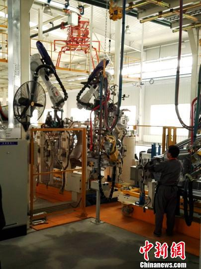 焊装生产线引进的瑞士ABB工业机器人自动化生产线。 俱凝搏 摄
