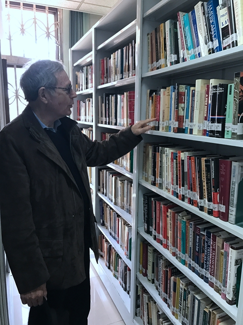 方纳参观历史学系图书馆方纳此次的北大之行,是时隔17年后的再次访华。作为一名“传奇的演讲者”,他的系列演讲为北大师生带来了美国史研究最深刻和系统的梳理与介绍,成功地引起了听众们的思考与对该领域的兴趣。作为一名耕耘多年的学者,他严谨的治学态度与丰富的学识深深感染了与之交往的诸多师生与学者。