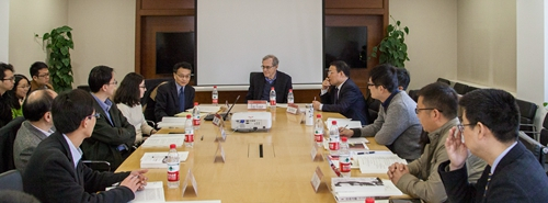 对话会后合影讲学期间,北京大学常务副校长吴志攀在临湖轩会见了埃里克·方纳教授。值得一提的是,方纳还在访问期间专门参观了北京大学历史学系图书馆,这里陈列着方纳2009年向北京大学捐赠的个人图书。负责接收这批赠书的王希老师还向随行的师生们讲述了这整整84箱图书是如何几经周折从大洋彼岸送达北大,从而极大地丰富了美国史研究的文献资料。方纳希望这批图书能够为北大师生研究美国史带来便利。此外,通过午餐会的形式,方纳还在文研院与来自北大历史学系、法学院与燕京学堂的研究生展开了学术交流。