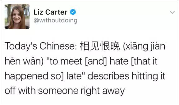 话说,@Liz Carter 这个网友,经常在推特上分享学习中文的经验。