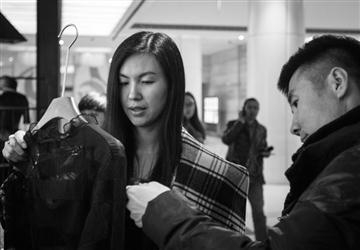 王蕾蕾的眼睛看不见,买服装时都要让丈夫在一旁描绘一番。本版图片由辽沈晚报、聊沈客户端主任记者 吴章杰 摄