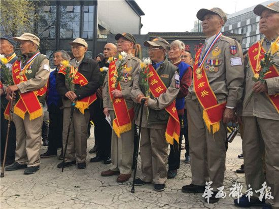 3月31日,风清云净。成都人民公园外,一群身着校服的学生,站在川军抗战纪念碑前,手捧鲜花。而在他们身旁不远,还站着18位或穿着军装,或佩戴纪念章的白发老人,望着纪念碑眼含泪光。而他们,都有着共同的名字——抗战老兵。