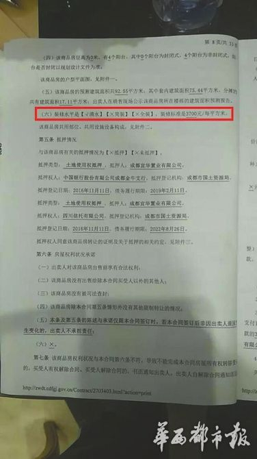 还有更蹊跷的事。记者从众多购房者初签的买卖房屋预售合同(购房者初签合同时拍下的图片)中看到,有合同上写着装修标准是“清水”,装修价格是“0元/每平方米”,而另一部分购房者提供的买卖合同里,约定为装修标准是“清水”,装修价格是“3700元/每平方米”。