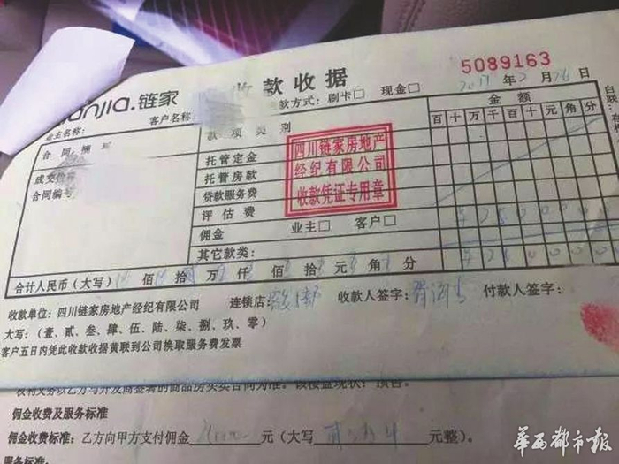 四川链家的收款收据。