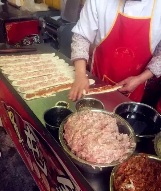 一般都是现做现卖,擀好的面片裹上新鲜的肉馅,馅儿分为猪肉和牛肉两种可以选择,感觉牛肉味的会更香一些。