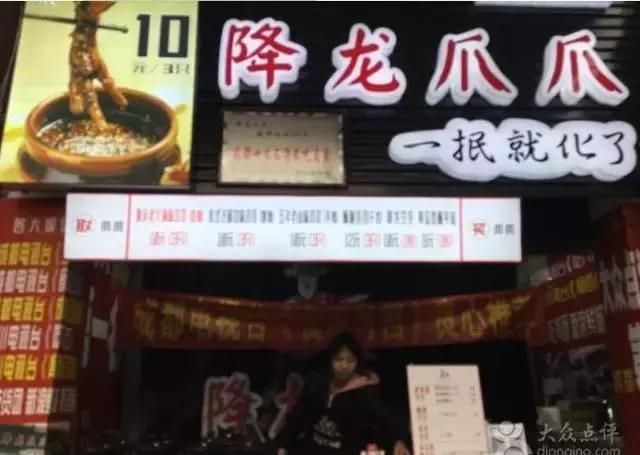 这家降龙爪爪开在热闹的磁器街,店名字倒是取得倒是洋气。不禁让人想去试试到底是个什么味道。店不大,门口摆满了味道不同的卤水,可以选择的味道蛮多噢。