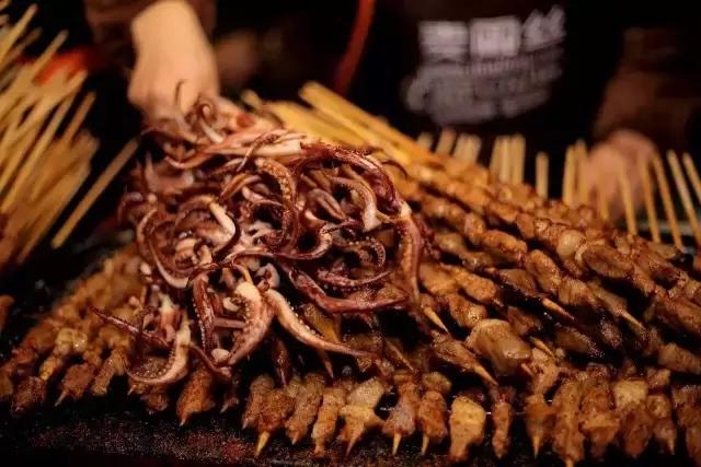 烤鱿鱼,隔着老远就能闻到香味,还没看到鱿鱼脑海里却已经脑补了吃它的画面。吃之前一定要裹满辣椒面,站在人堆里,扯下粗粗的一根,辣椒面糊到嘴上也来不及擦,因为好吃到不容打岔。