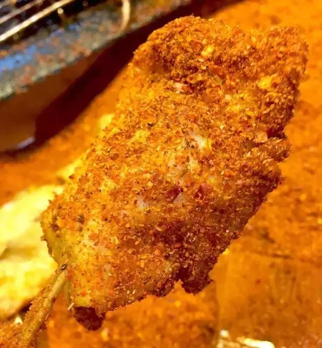 刚从炸锅里捞起来的里脊,又嫩又香,表面还泛着油汁。用纸包住签尾,在辣椒面360度打滚,整个过程让人几度吞咽口水。吃之前先闻一下,太香啦,一口咬下去,Q弹的口感瞬间将你折服。