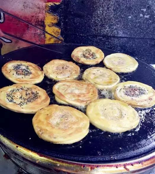 把锅盔放在煎锅上,随着菜油渐涨,肉馅儿的香味也隐隐约约地飘到各处,让过路的人都忍不住顿了顿脚步,等待出锅的人更是着急。