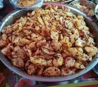 已经码好了调料,只要站近一点就能嗅到诱人的辣椒香气。个人觉得片片土豆更加入味。吃起来绝对停不下口,越辣越想吃,倍儿爽!
