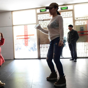 每天晚上7点30分,在沙坪坝区金阳易城国际广场,动感的音乐声下,上百人踩着节拍舞动。人群前方的站台上,有位领舞者格外引人注目。和其他领舞者不同,这名领舞还在上幼儿园。她叫静静,只有5岁半,但是她现在已有上百的粉丝。