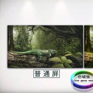 在视频中,TCL通过变色龙的多变的躯体颜色展现了TCL量子点屏幕和普通屏幕的色域值差距,普通屏幕的色彩略显暗淡无光,而量子点屏幕的变色龙更加接近真实的色彩,栩栩如生。