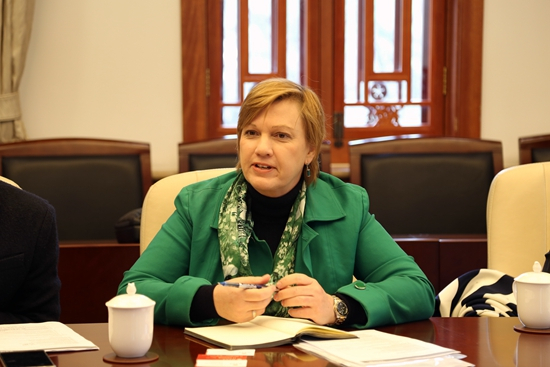 花楠与郑道介绍UNICEF驻华办事处的相关情况叶静漪对UNICEF驻华办事处的工作成果给予了高度评价。她指出,北京大学多元化、国际化的人才培养目标与UNICEF十分契合。近期,学校学生就业指导服务中心专门成立了国际组织人才办公室,旨在为学生与国际组织搭建起一座宽阔通畅、坚实稳固的桥梁,帮助有意愿到国际组织工作的学生提供辅导咨询和求职机会,也为国际组织选拔优秀青年人才提供精准服务。借助这次机会,加强双方在人才培养上的合作,拓展北大学生到UNICEF的实习项目,具有重要意义。此外,北大学科门类丰富齐全,特别是在许多UNICEF关注的研究领域有实力雄厚的相关学科,相信一定能与UNICEF展开良好的学术研究合作。