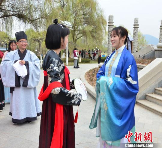 图为兰州清明祭祀仪式上的汉服展示。崔琳 摄