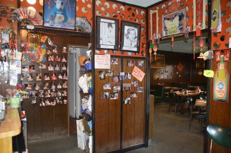 一进入老字号"金星”中餐馆,迎面而来的是热闹纷陈的各种相片。(美国《世界日报》/王善言 摄)