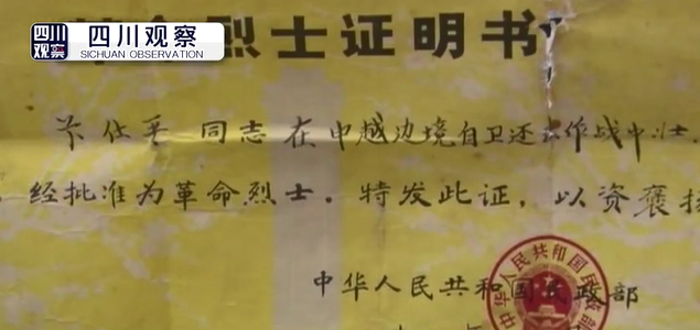 蒲运海告诉记者,小儿子蒲仕平从小的愿望就是当一名军人,1976年,蒲仕平选择了报国参军,然而仅仅3年时间,却传来年仅24岁的儿子在战场上牺牲的噩耗,捧着一纸《烈士证明书》,蒲运海肝肠寸断。