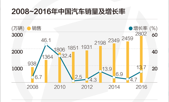 数据显示,2016年中国汽车产销分别完成2811.9万辆和2802.8万辆,与上年同期相比分别增长14.5%和13.7%,毫无悬念连续第八年领跑全世界,但是中国车市的综合产能已经严重“超标”,现有使用+规划产能已经接近4000万辆。《华尔街日报》曾用“那是一个产生奇迹的地方”来惊叹中国车市获得2800万辆销量,但是却掩藏不了中国车市产能过剩、症结难解的现状。