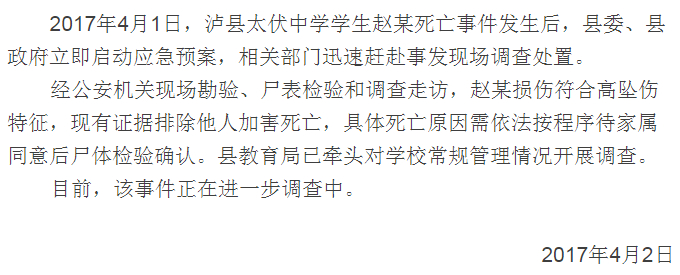 近日,四川泸县太伏中学一名学生突然死亡的事件,引发社会关注。