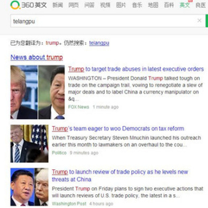 生活中很多时候我们需要使用第一手英文资料,但是英文词汇量的缺乏始终是阻碍大家英语学习的一道坎。在使用搜索引擎时,不能准确理解翻译英文搜索关键词,也会导致网民找不到理想的英文页面。360英文搜索打通中文、拼音和英文的输入壁垒,其中文、拼音智能识别功能,支持智能翻译,用户可以在搜索栏输入汉字或者拼音等关键词,系统会先通过翻译引擎将用户输入的关键词自动译成英文,然后检索出相应的英文词条,展示出原汁原味的英文网页,为用户提供第一手的海外资讯,解决用户困扰。