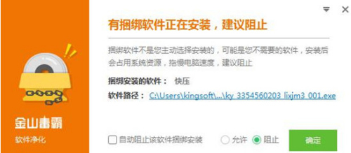 当用户开启金山毒霸软件净化功能之后,这些捆绑安装和欺骗安装均被拦截。