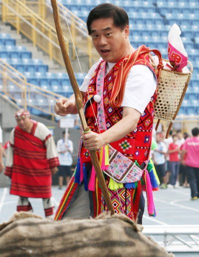 郝龙斌当市长时参加活动,与上千名娴熟弓箭的台湾少数民族人士齐聚台北田径场。郝龙斌“示范”射山猪,前两箭都“挖地瓜”,落在脚前;后三箭则卡在手上。郝龙斌笑说,“现在我还不够格作‘原住民’”,既自我解嘲,也让“原住民”听了舒服、心里轻飘飘的。