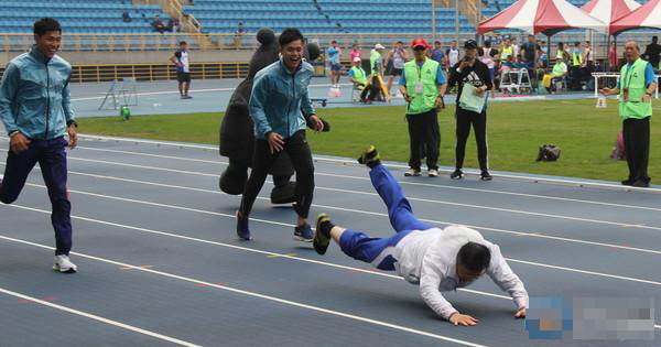 中国台湾网4月8日讯 台北市长柯文哲昨日视察2017台北世界大学生运动会田径场,并兴致勃勃要“试跑”,没想到起跑3秒就因重心不稳踉跄跌倒,当场“扑街”。受访时只得自我解嘲道,“还好,跑道还不错,跌倒还蛮有弹性的”。